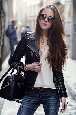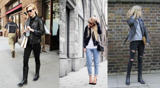 皮衣其实是永久的论题,一件T恤一条牛仔裤处理一切的所谓的时髦问题。破洞牛仔裤合适与更健康或豪华的面料磕碰,两者间发生的火花会让你的全身LOOK更有看头。比方一件皮革袖拼接的长大衣、机车皮衣或豪华感的皮草,破洞牛仔裤会给你一种嗤之以鼻的姿势,让你时髦得更自豪。